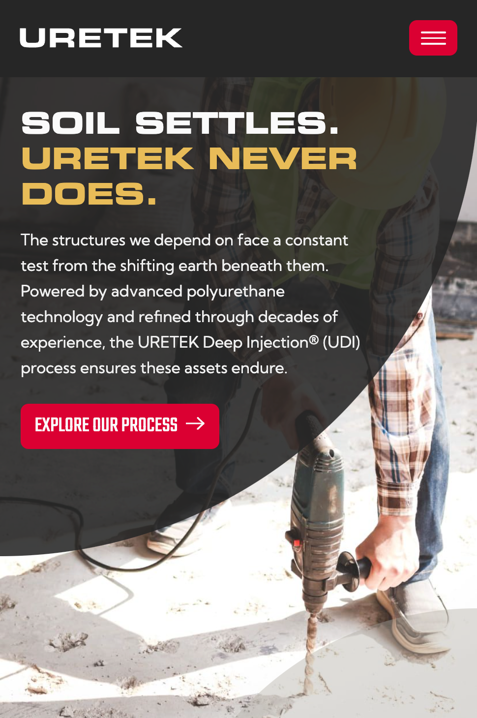 For URETEK USA, a brand platform designed to elevate a highly technical service into a clear, human promise—positioning URETEK not just as soil stabilization experts, but as long-term partners supporting critical infrastructure from the ground up.